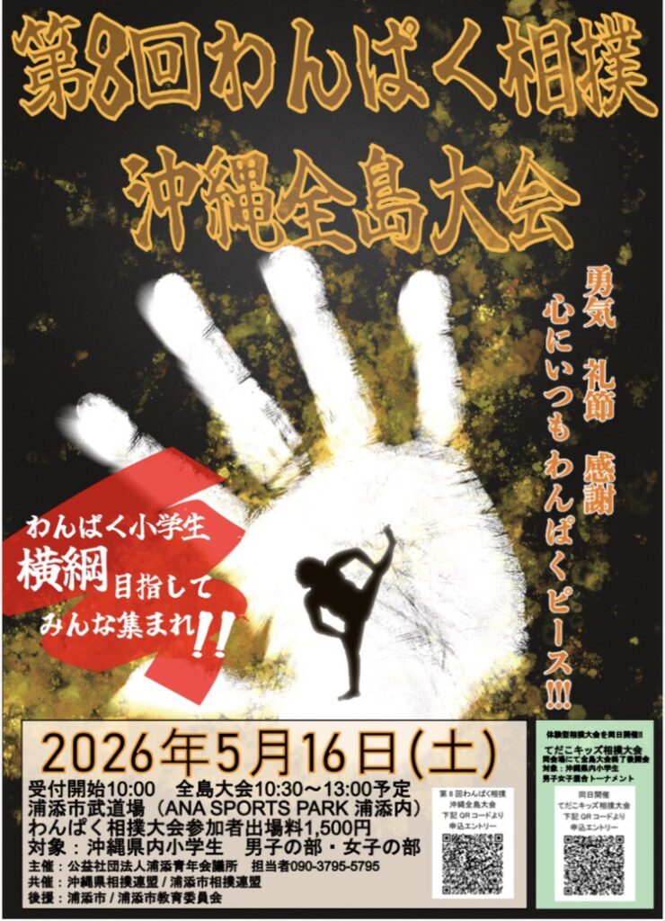 浦添JC主催で第8回わんぱく相撲沖縄全島大会が開催されます。